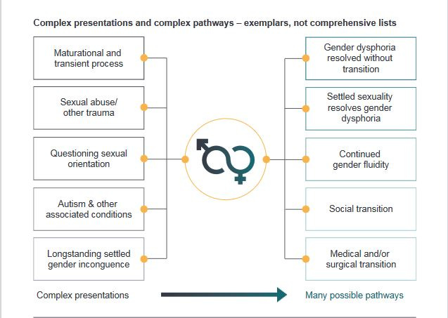 Figure 1 Cass Interim Review diagram shows complex presentations and pathways related to gender identity