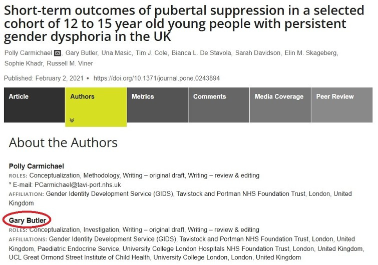 Fact Check: As the image below shows, Professor Butler is listed as one of the authors of the GIDS EIS. His roles are described as “Conceptualization, Investigation, Writing – original draft, Writing – review and editing”. Given that he was therefore involved in quite literally every part of the EIS, it is extremely difficult to understand his claim that he “was not directly involved”.
